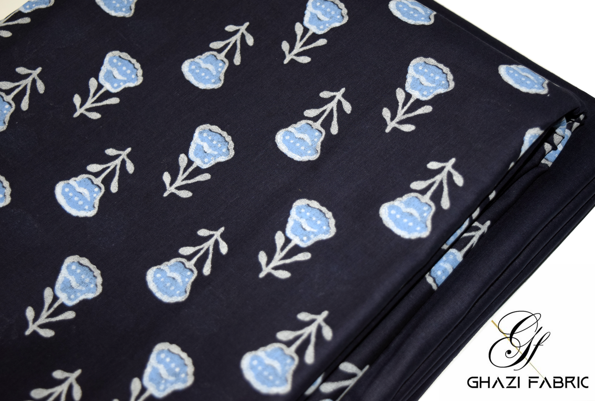 Ghazi fabric Unstitched dress Lawn Cotton 2 piece suit for women printed dresses for women royal blue DTS32/2