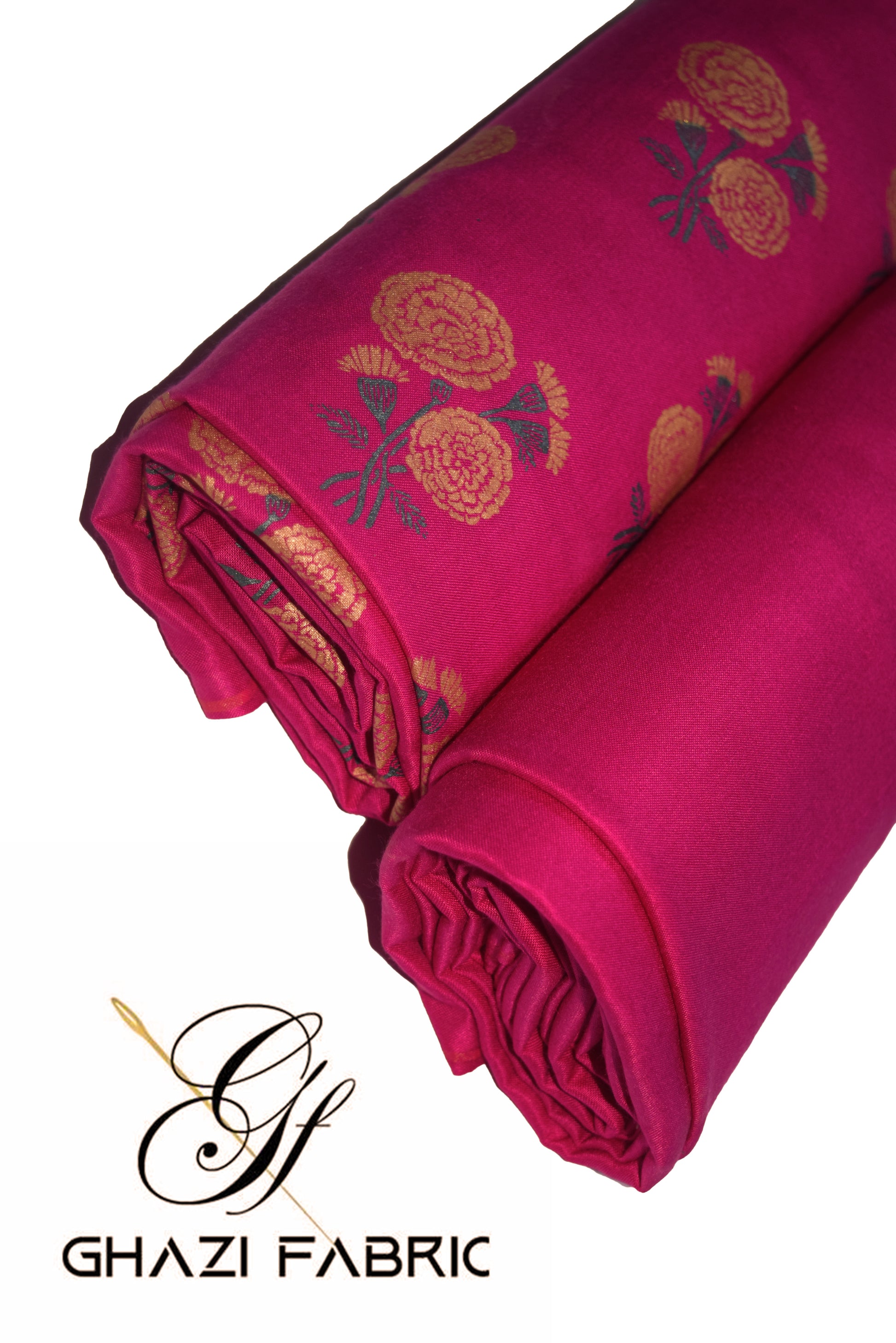 Ghazi Fabric Unstitched Linen 2-Piece Suit for Women - Feroza Series Blush Pink (Shocking Pink) (FZ Series-0052142/8)