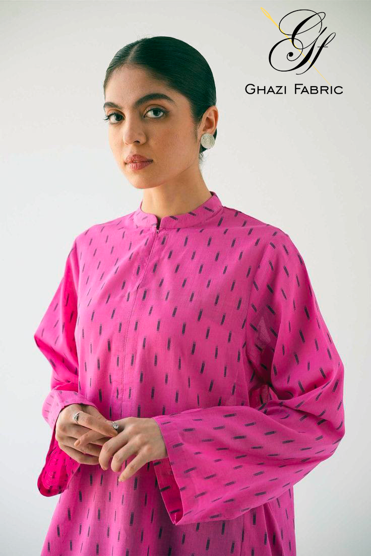 Embrace elegance and sophistication with the Ghazi Fabric Unstitched Linen 2 Piece Suit for Women in maroon. This exquisite ensemble is crafted from premium linen fabric, renowned for its breathability, comfort, and timeless appeal. The suit comprises a gracefully tailored kurta and a versatile dupatta, offering a versatile option for both formal and semi-formal occasions.