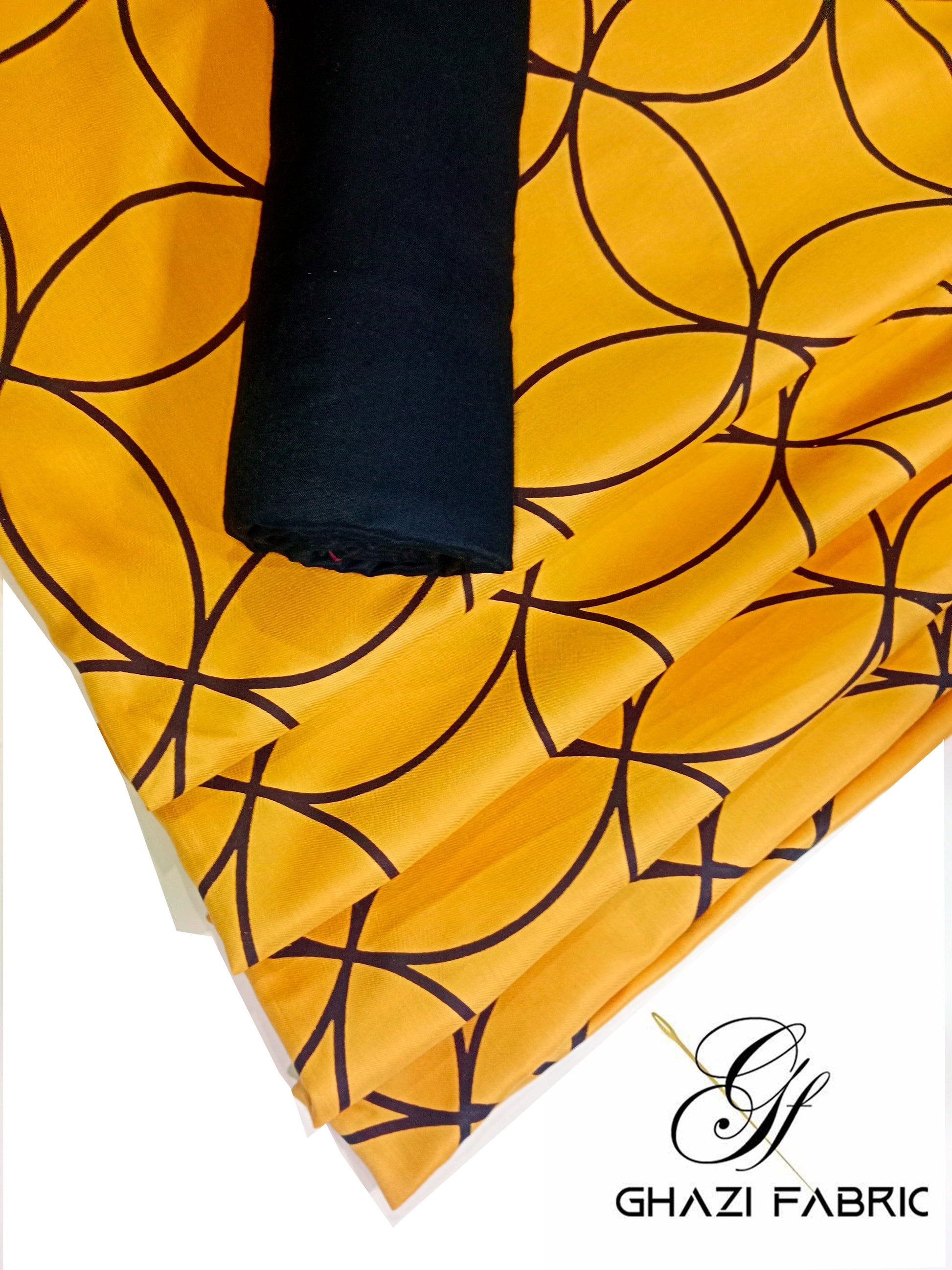 Ghazi Fabric Unstitched Linen 2-Piece Suit for Women – Feroza Series Mustard with Black (FZ Series-1099/8) – New Collection