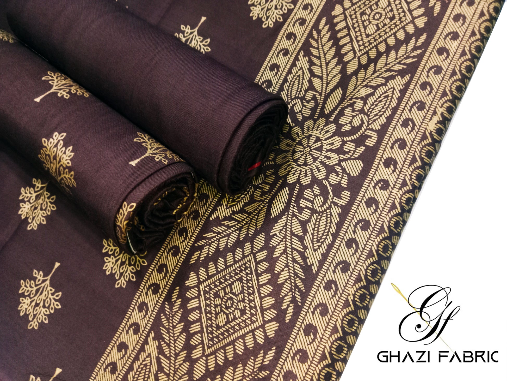 Ghazi fabric Unstitched Linen 3 piece Feroza series Volume II suit for women brown (Feroza series 0045/3)