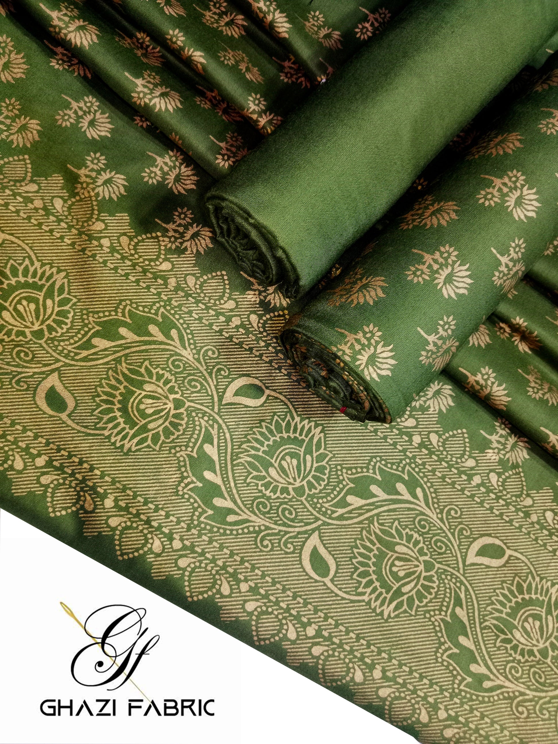 Ghazi Fabric Unstitched Linen 3-Piece Suit for Women - Feroza Series Volume II, Olive Green (0024/3) | Premium Winter Collection