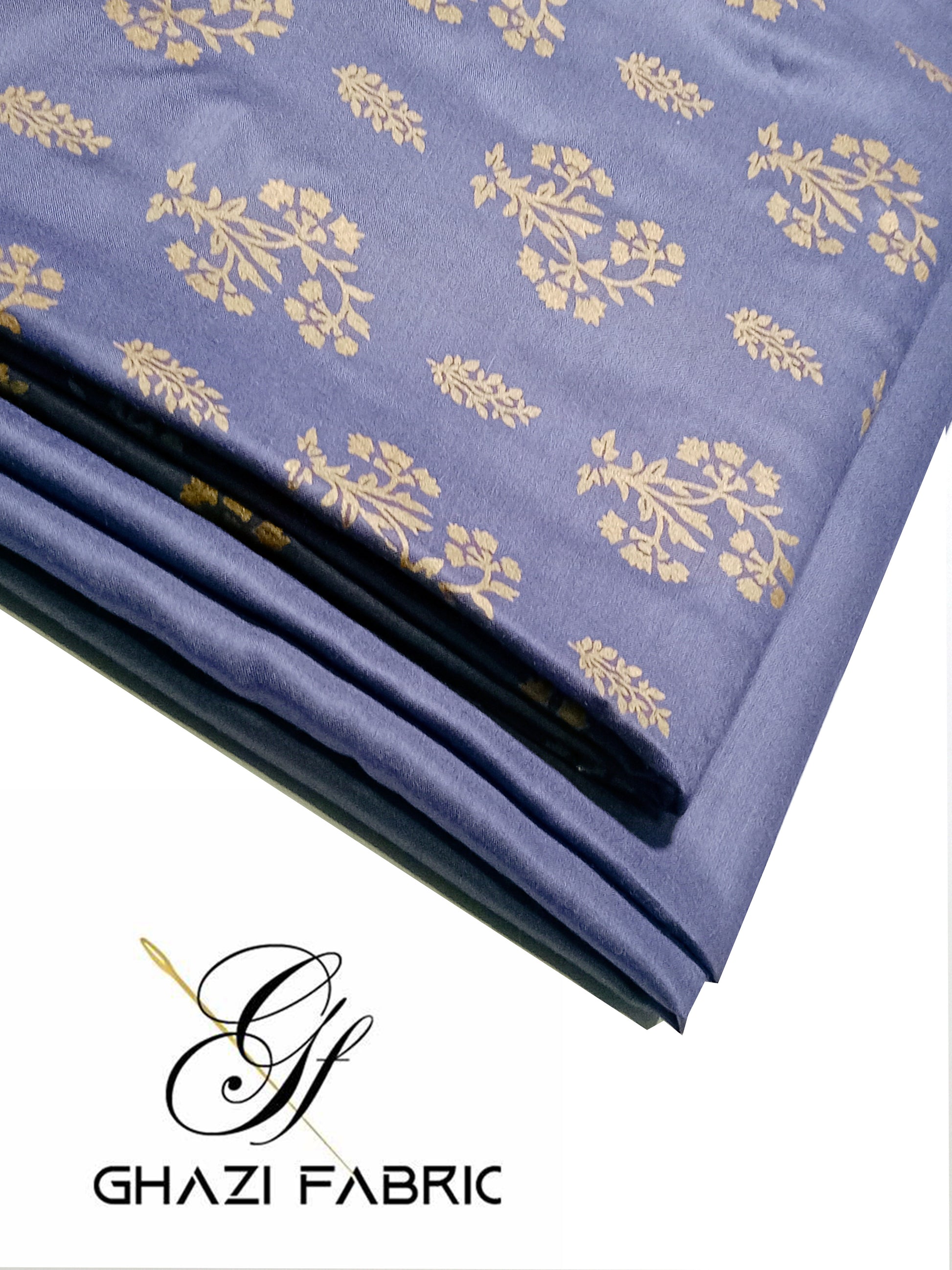 Ghazi fabric Unstitched Premium Quality Linen Dress Collection Famza Series Unstitch 2 Piece Suit For Women Gray (FM1109-H2-B)